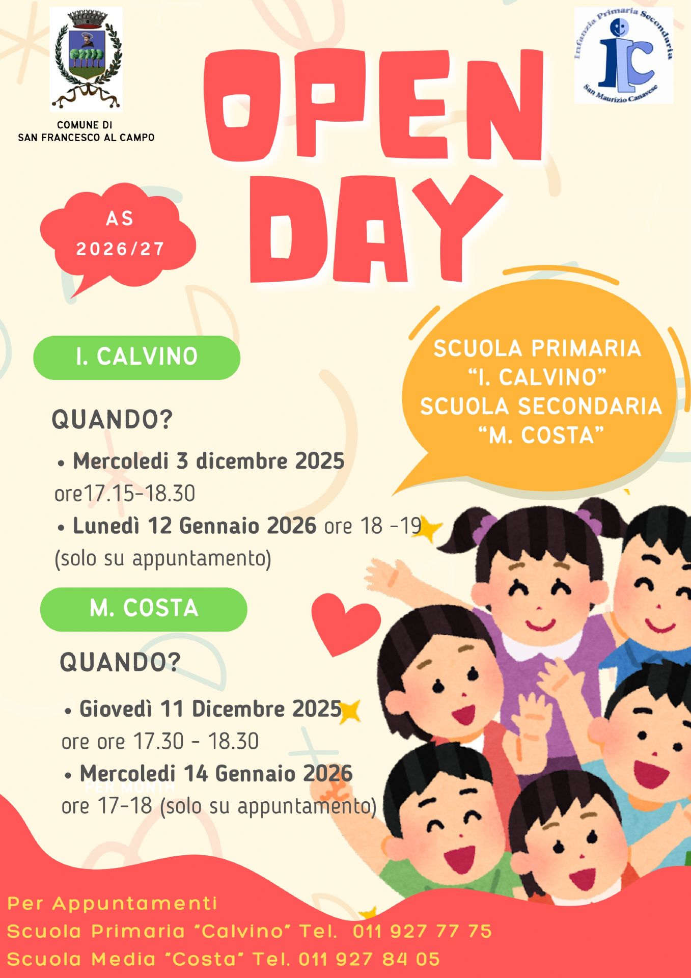 Quattro pomeriggi per conoscere le scuole del paese che i nostri figli frequenteranno nel prossimo anno scolastico. Sono gli Open Day organizzati presso la scuola primaria "Italo Calvino" e la secondaria di primo grado "Mario Costa".