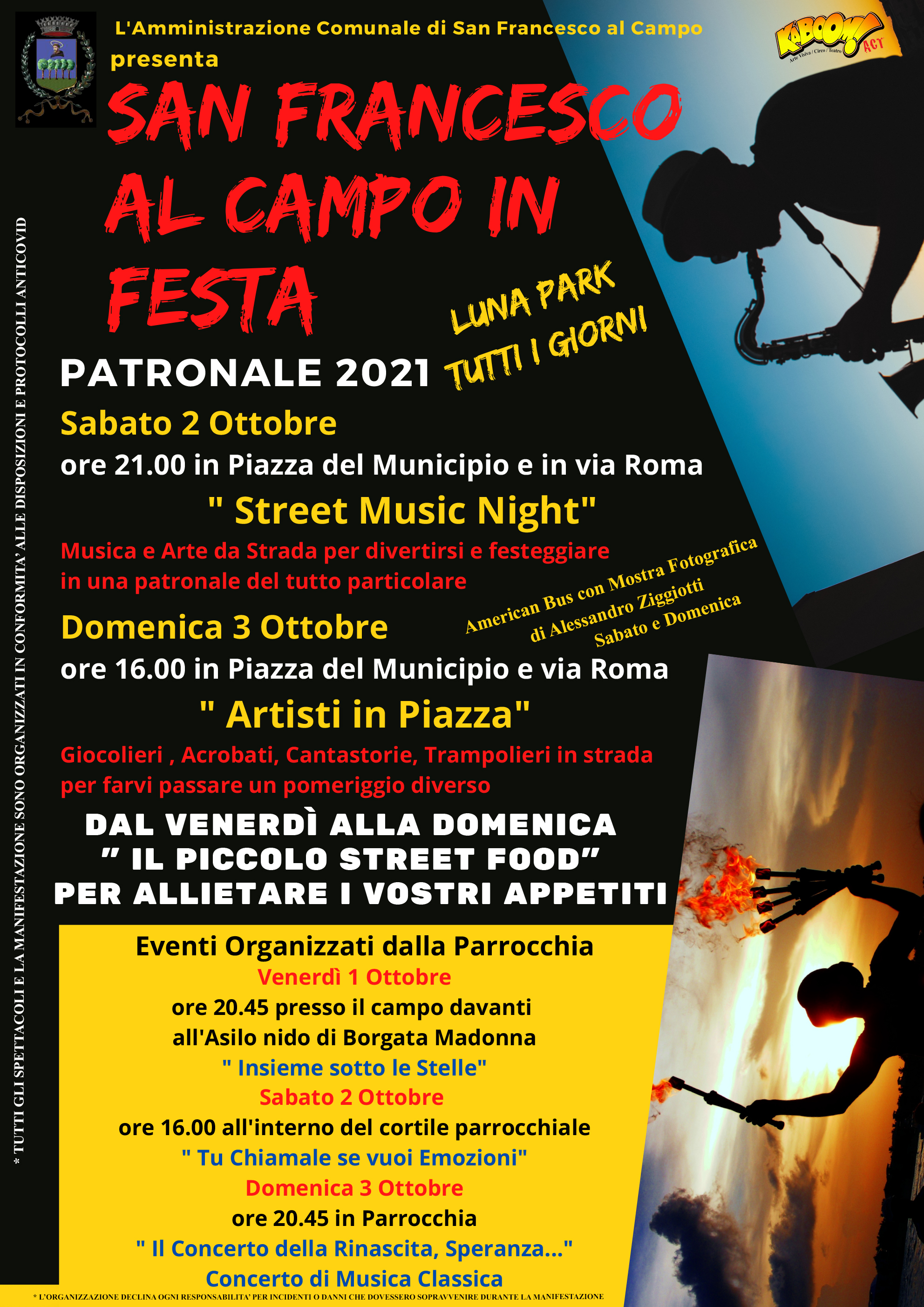 In occasione della Festa patronale, da venerdì 1 a domenica 3 Ottobre si terrà una serie di appuntamenti organizzati dalla Parrocchia, accompagnati dallo spettacolo "Artisti in Piazza".