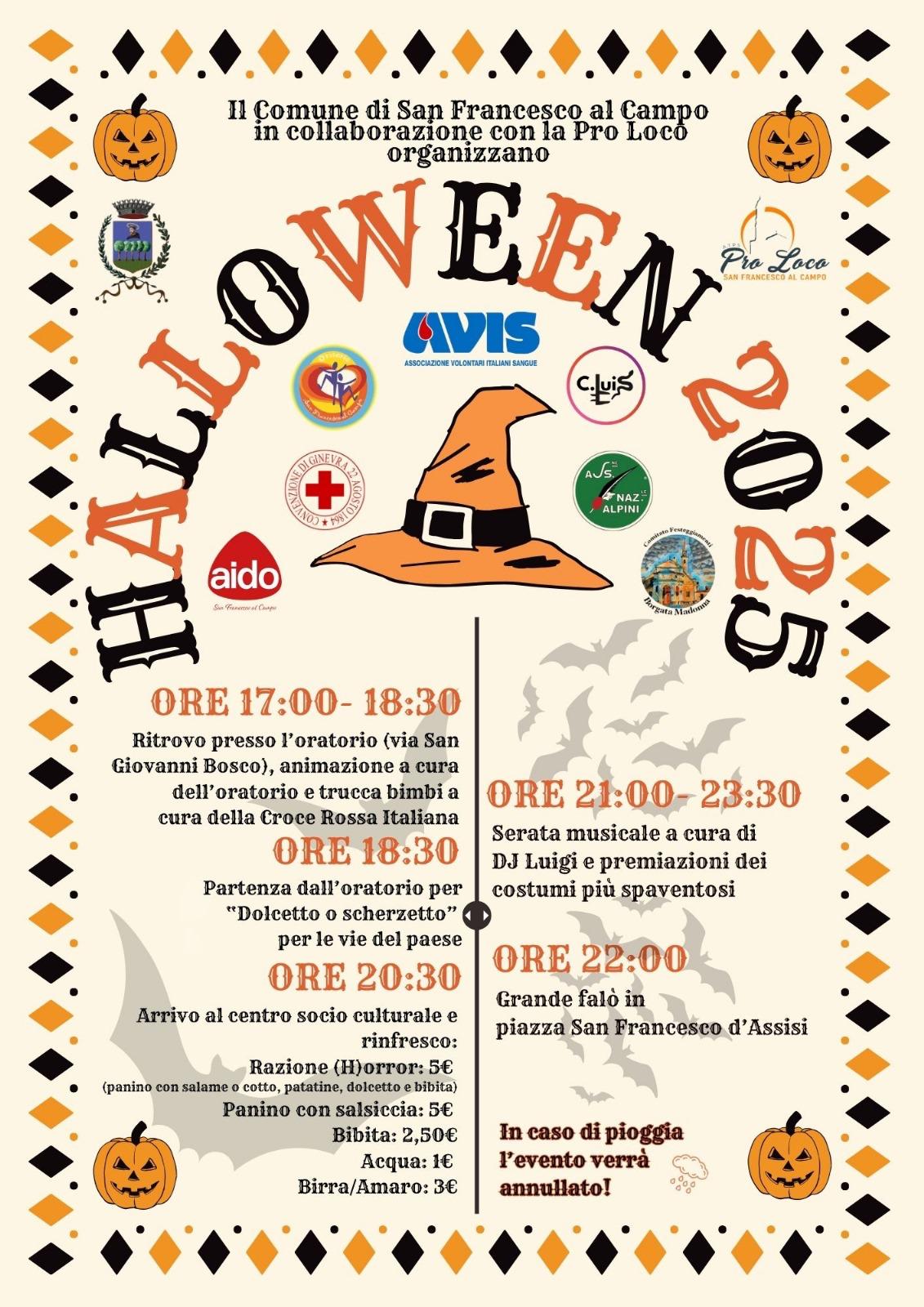 Vi aspettiamo all'Oratorio a partire dalle 17: si comincia con animazione e truccabimbi. Poi, a partire dalle 18.30, l'immancabile "dolcetto o scherzetto" per le vie del paese. Alle 20.30 tutti in piazza San Francesco d'Assisi per il rinfresco (e l'irresistibile pizza offerta dal Comune!). Ma non finisce qui. Alle 21.30 nel centro sociale serata musicale e premiazione dei costumi più spaventosi. Alle 22 gran falò in piazza.