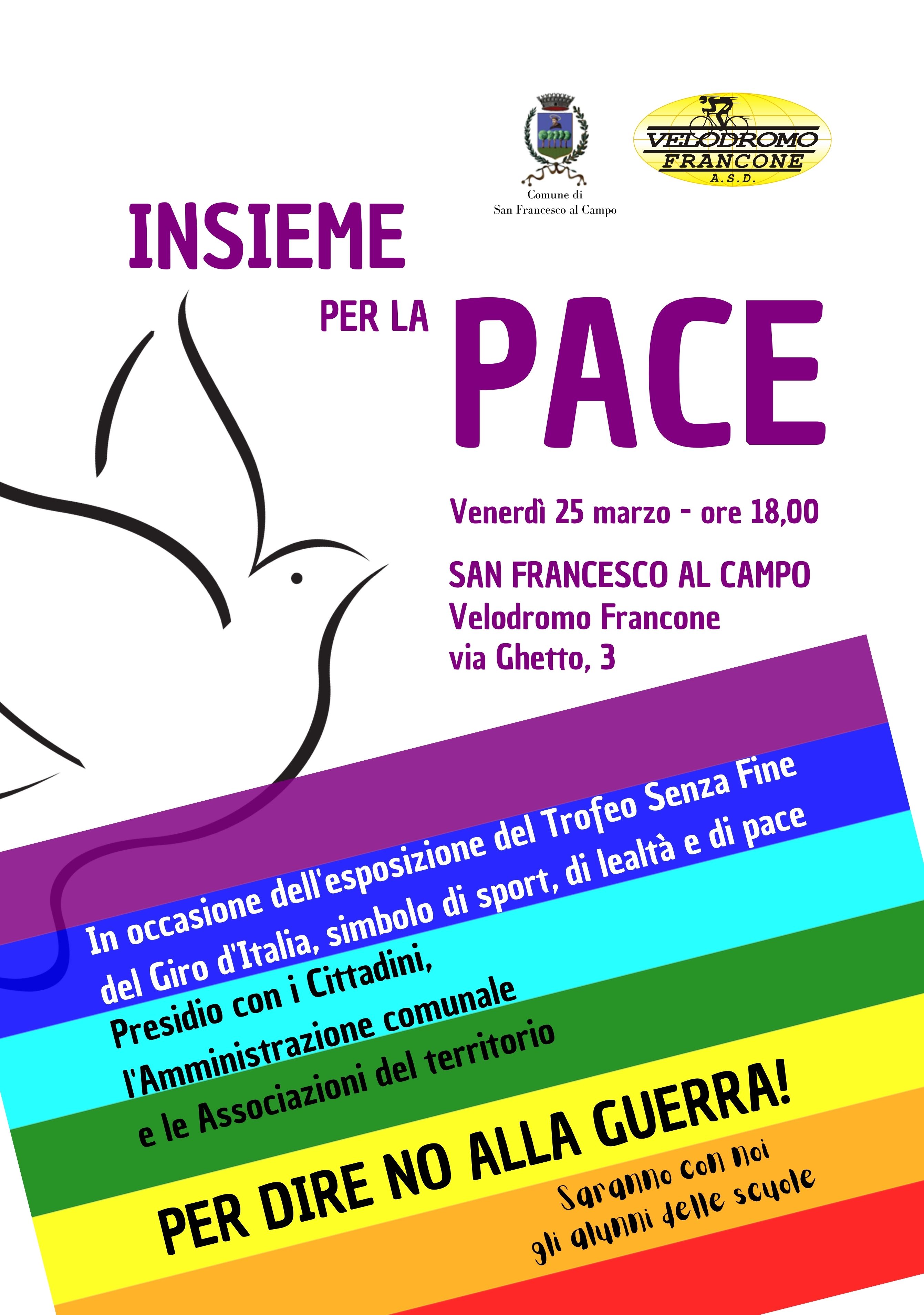 Venerdì 25 Marzo alle ore 18.00 al Velodromo Francone, si terrà la Manifestazione per la Pace.