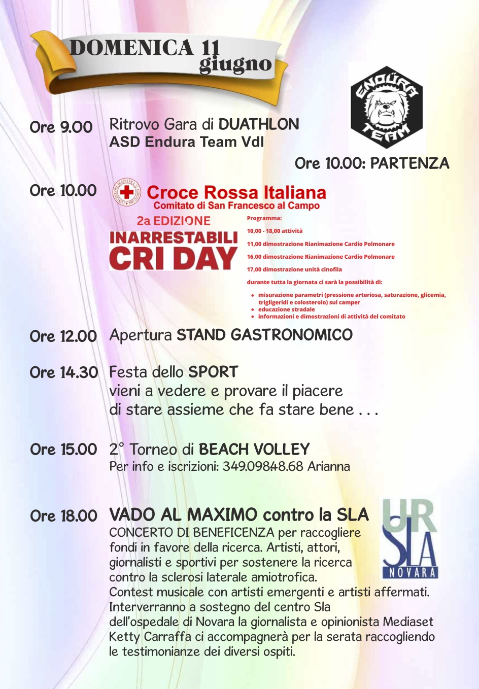 Fino domenica 11 giugno, 4 giorni di attività per adulti e bambini con musica, Palio delle Borgate, stand gastronomici, festival ROKKAROLLA, attività e tornei sportivi, corso della Croce Rossa e concerto di beneficienza contro la SLA.