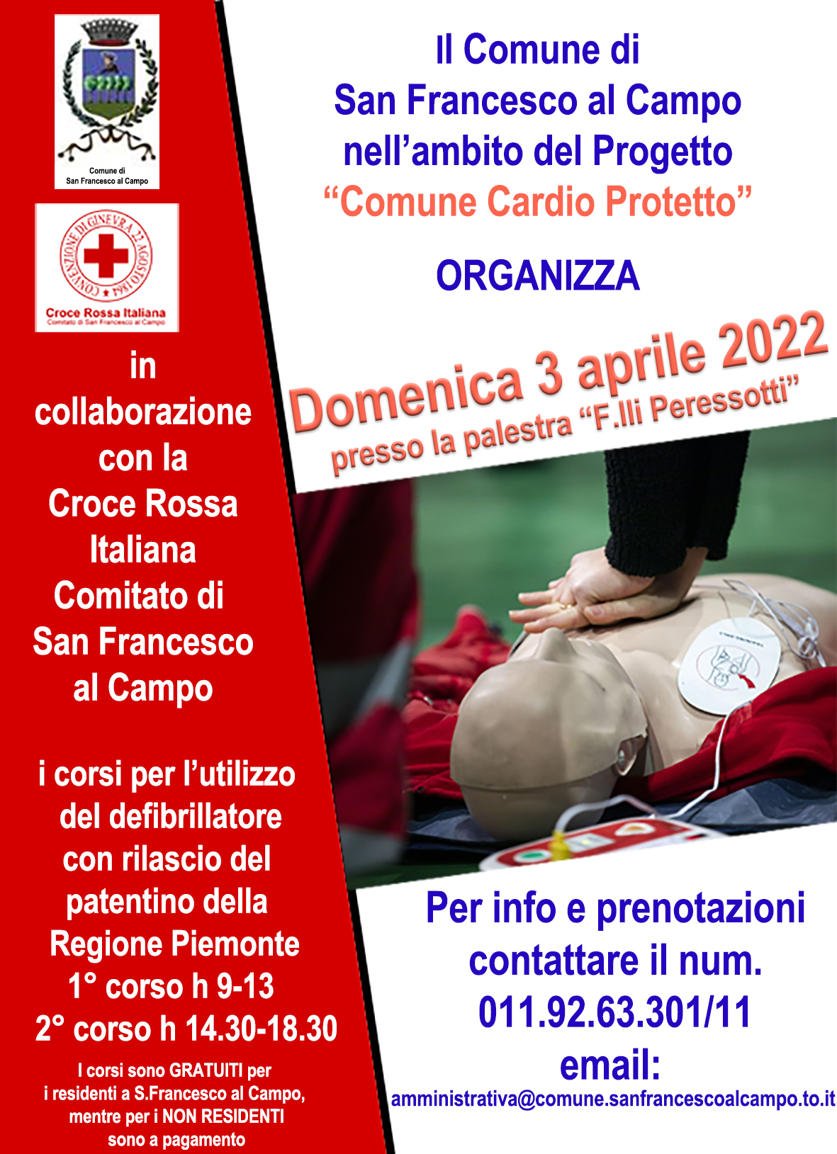 Domenica 3 aprile, presso la palestra F.lli Peressotti, si terrà il corso per l’utilizzo del defibrillatore con rilascio del patentino della Regione Piemonte.