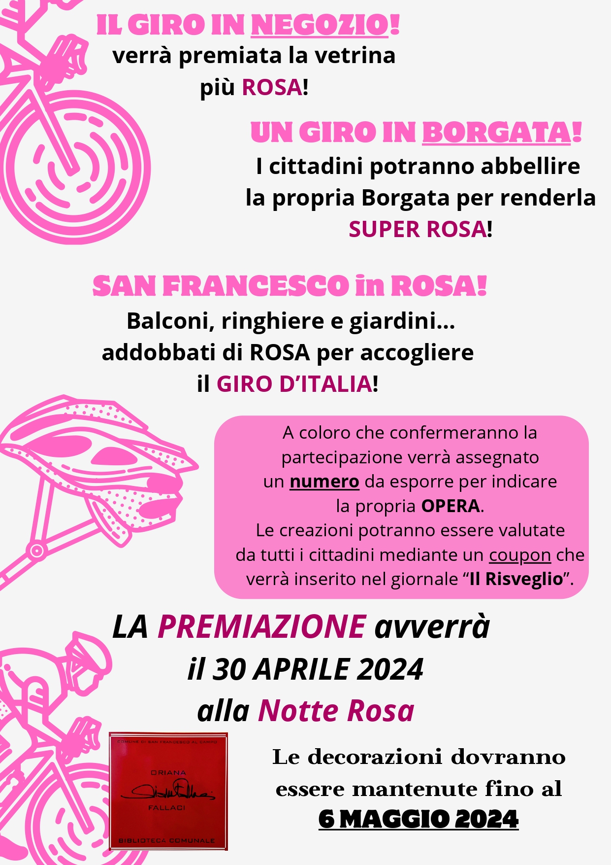 In occasione del Giro d'Italia, San Francesco al Campo si veste di rosa e organizza il contest rivolto a tutti (esercizi commerciali, borgate e privati) per rendere più rosa il paese.